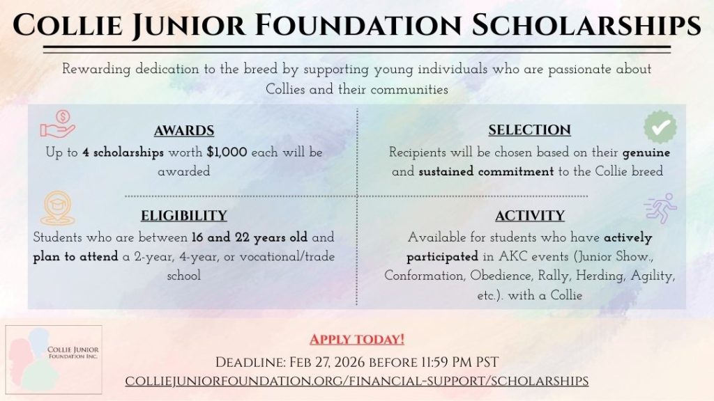 Offering scholarships, education, and connection to future and current Juniors showing Collies.